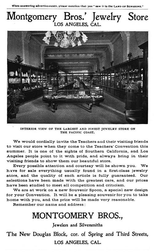 Just a quick search, so far I find that they jewelers in LA were George A. & James A. Montgomery, in business approx 1887-1930