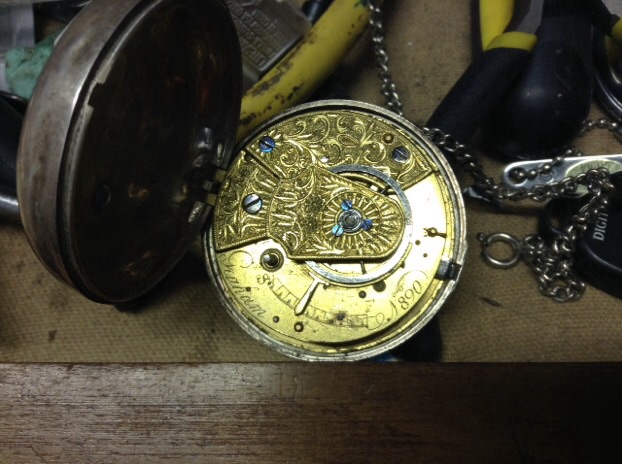 Victor KienasI would say it is an English verge fusee from the early 1800's just by looking at the style of the movement and the balance cock on it.just about all of the English watches and the continental watches back then had dials with 3 legs on them held on with tapered brass pins.i have had them from the 1700's to early 1900's with the 3 foot dials...Vic
