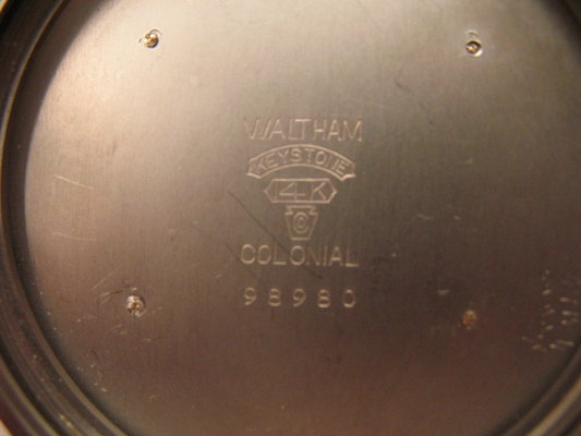 As for the movement, tomorrow I'll photo and post, but it is simply a Waltham Royal, 19J, 3 adjust, 12s (or "COL" as the Waltham site refers to the size) The case is white gold which I find to be unusual. The chain I received with it is NOT gold, but the charm and watch are. I figured 3.54 grams for the charm and 20.44 grams for the watch in today's gold to be approx. $350. The watch does run and I cleaned it today, but the stem needs adjusting to make it wind smoothly. I don't know how to do this!