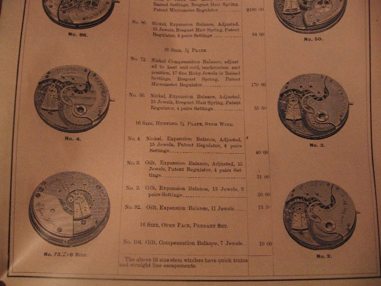 I like the early 16 size watches. They are generally under valued, I think, but many of them are fairly scarce, and so, are very collectable. Here is part of an Elgin ad that I bought recently on eBay that was advertised as dating to the year 1880. Note that the values have not changed so much in 128 years!