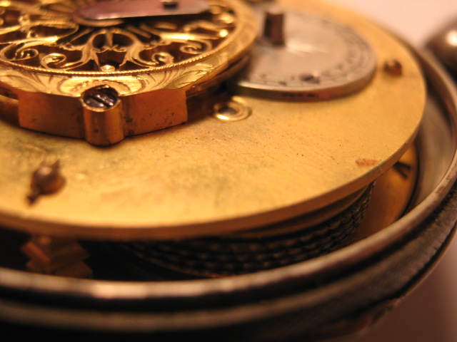 Good dial and hands ! French fusees are wound from the front side, this causes often terrible chips near the winding arbor.