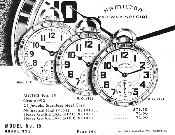 Below is an (excerpt) from a Hamilton (1950-51) Catalog with the # 15 case and 3 different dials.