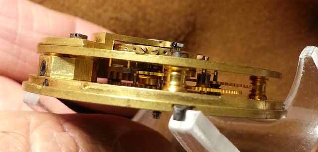 It's hard to see in these dinky photos... but if you Ctrl roll to blow up the photo, you can see the center wheel jewel under the edge of the hair spring and the other under the cannon pinion.
