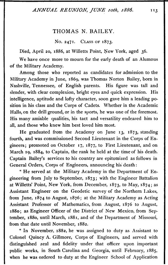 The obit mentioned he had made the "list of distinguished cadets" while at West Point and excelled at mathmatics, had a career with the Corps of Engineers and as a professor of mathematics back at West point.