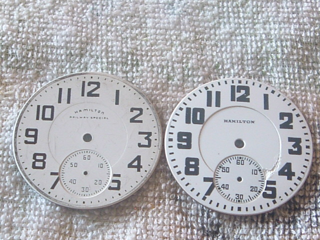 Your melamine dial on the left has what is known as "severe bezel rub". Take a clean pencil eraser and go all around the edge and see if you can't erase that bezel rub. Rinse it off with some lukewarm water and pat it dry, but don't rub it dry as some of the melamine may flake and/or some of the numeral or hash mark paint may flake.. You can also try some Joy dishwashing liquid applied on q-tips and go around that outside bezel rub and then rinse again and pat dry. That should improve that dial 100%.