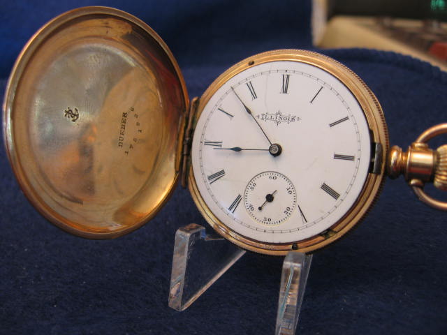 The dial says 'Illinois' but not the movement which is labeled AA Cruttenden & Co., De Moines, Iowa....