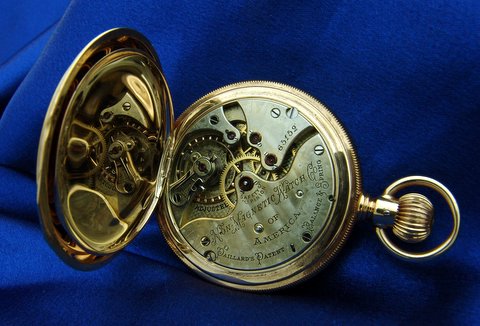 Here is a shot of the dial. This is a great looking watch. It is a 16 size, in a heavy 14K gold hunter case.