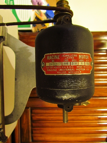 I did not realize how small these jewelers lathes were. The flat part of the slide is 32mm. The channel is 8mm wide. It is made by Racine or at least the motor is.