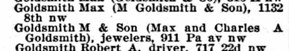 If you are interested, M. Goldsmith & Son were Max & Charles Goldsmith. The image below is from the 1897 Washington DC city directory.