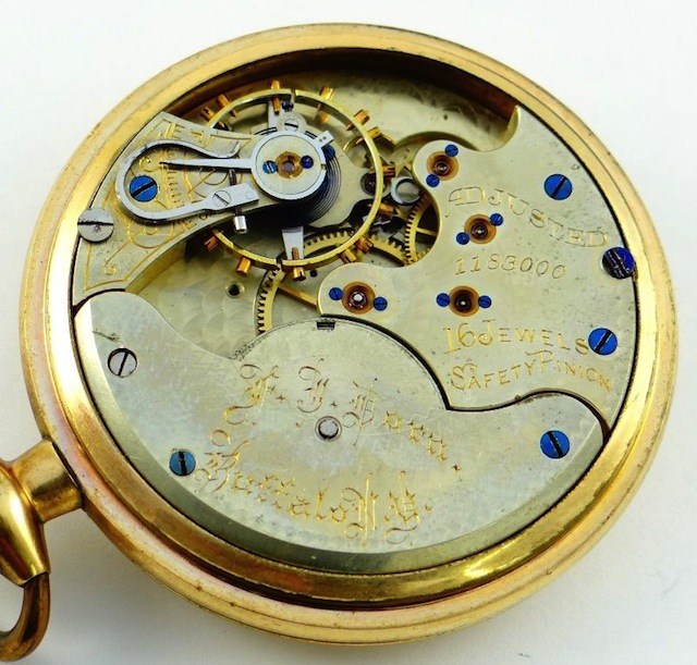 David AbbeYou are looking at an Extremely Rare (1 of 100 in 16J type and 1200 in 15J grade) Illinois Grade 114-S, 16s Lever set Model 3 (first HC 16s Model) c.a. 1894. This beauty is rare because they were so fragile that they required service very often and were easily service damaged just by pressing on the Cannon Pinion. (Look at the long unsupported canteleiver to the center of the top movement plate.)
