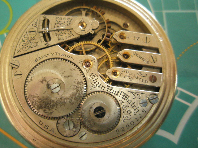 Richard M. JonesHi Peter, I believe your watch is not the ** version but either the 340 or other version. I cannot tell for sure from the pictures but i don't think the train is gold. At any rate it is a nice watch. If the wheels are pitted there is really no way to get the pits out except to polish them out and it might be better, if it is the less expensive model to try to find a parts watch with decent wheels and click.