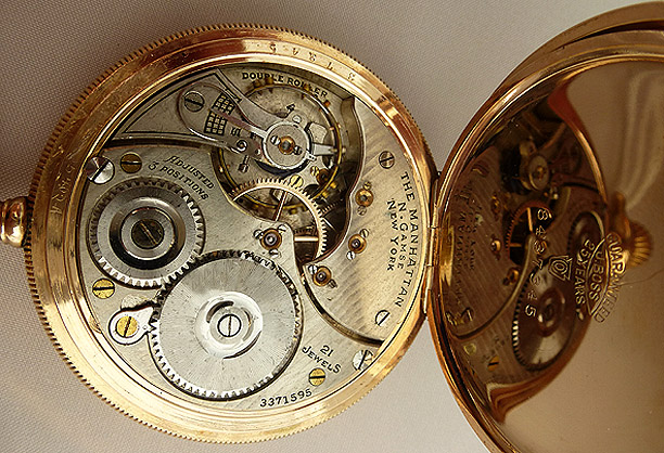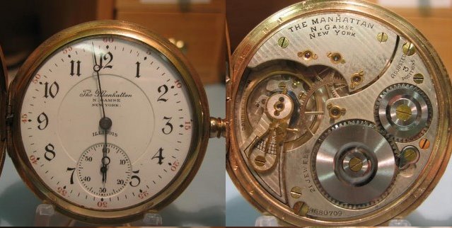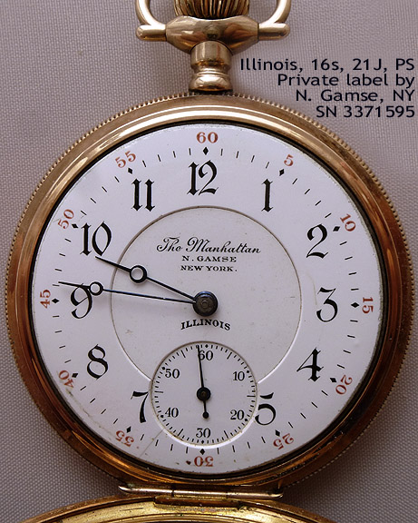 This s/n 3680709, Hunter-Cased Illinois 16s model 6 mvt in 21J, adj 3Pos., and double signed; "The Manhatten, N Gamse New York" was part of a 200 piece run of these Illinois Pvt Label named watches that apparently went "under the radar" of the famed "Blue Book" which does recognize this named watch but only as an Open-Faced model and some sort of "A.Lincoln" type. Would that mean that only 200 of these were ever made?