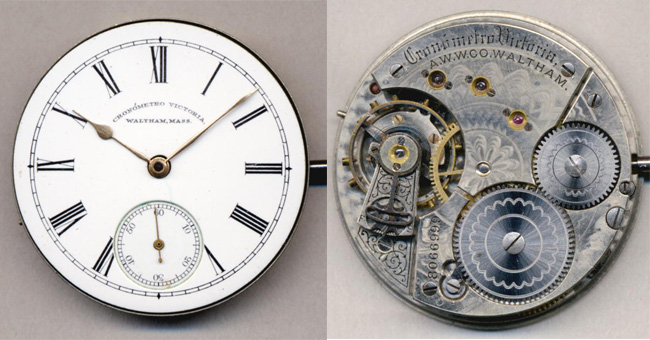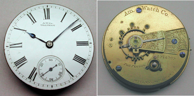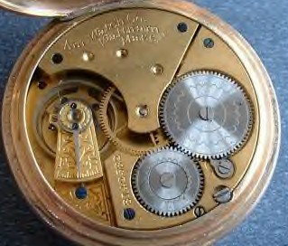 The labeling on Sheila's movement is also not typical of domestic movements. Most gilt 7-jewel '88 models like this, for the local market, are marked "A.W.W.Co." rather than spelling out the company name.