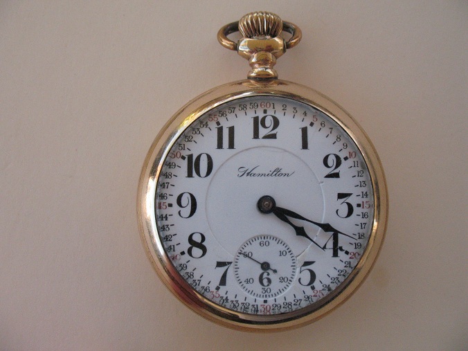 Just a little shot on my latest pick from ebay. A nice looking 948. As you may know there were only 1500 made of this grade. This seemed like a clean movement. I cleaned it, and had it restaffed and it is running now. This is not a good case, but merely a movement holder quality brassy one. As always, comments are welcome, both good, and bad.