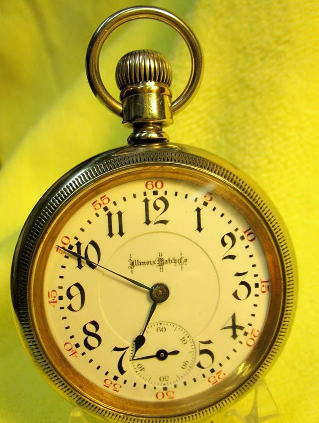 Theodore J. Brown Sr.Nice job on a great Illinois, Dave! I have one just like it, also in a swing-ring case.It's one of my favorite watches.Love that sun ray damaskeen pattern.Those dials usually have a lot of hairlines.Were they made thinner than other Illinois dials?