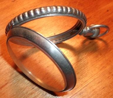 I found this pocket watch case in an antique mall. It is hinged-front and snap-on back. There is no brand name or indication of what it's made of, only a serial number. It is apparently for a lever-set movement, since the crown doesn't pull up. Has anyone seen a case like this? Any idea who made it - and of what? The cut-out for the lever is at 2:00. From the backside, the case screw marks are at about 2:00 and 7:00. Any idea what brand movement might have been in it?