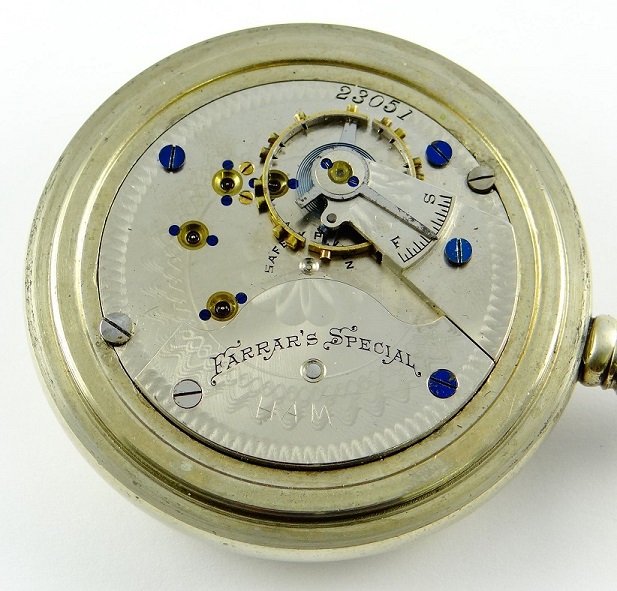 William D. WhiteH A M stands for Harold A. Morgenstern. He was the master engraver at Hamilton from 1879 - 1921 and was well known for emulating the home-engraving styles of the common man. For this novel work, he used only a sharpened screwdriver. ...pretty convincing I'd say! Some other work of his that I've seen included "Jake" "21 jewels" and "9 positions", all engraved on 7 jewel movements. In the pictured example, Harold scratched his own initials which makes this watch exceedingly rare and valuable! After Harold retired, Another master engraver named Alvin S. Stienblatt took his place. His work can be recognized easily as he used the more modern electric buzzing engraver. Known examples include "safety barrel" "Leonard C., Ithaca, NY" and "temp"