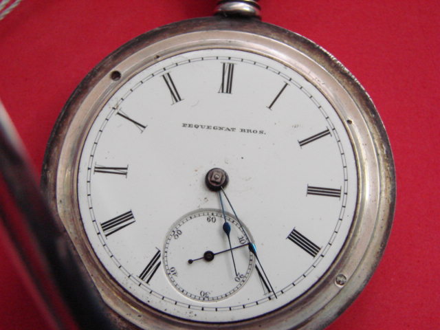 Hugh John PintoVery nice item and pretty rare. First a Pequegnat Bros. watch I have seen.