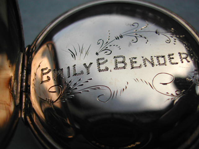 I'm currently processing two more that have inscriptions, but unfortunately, they only have limited information. One I mention in a post regarding gold cases, a Hamilton 974, the other a pristine (and I MEAN pristine) Waltham hunter that is inscribed from a wife to a husband for their 15 wedding anniversery, November 6th, 1889-1904. No last names. Apparently he didn't carry it much, as the case turning and engraving is sharp as a brand new one. I did detect one slight hairline on the dial, but it's hard to see. Not enough info for research.