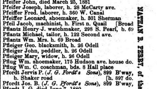 Tom BrownMr. Pflantz was born about 1852 in NY according to the 1880 census for Albany. He was living with his mother Hennrette & two of his sisters, he is listed as a jeweler then.