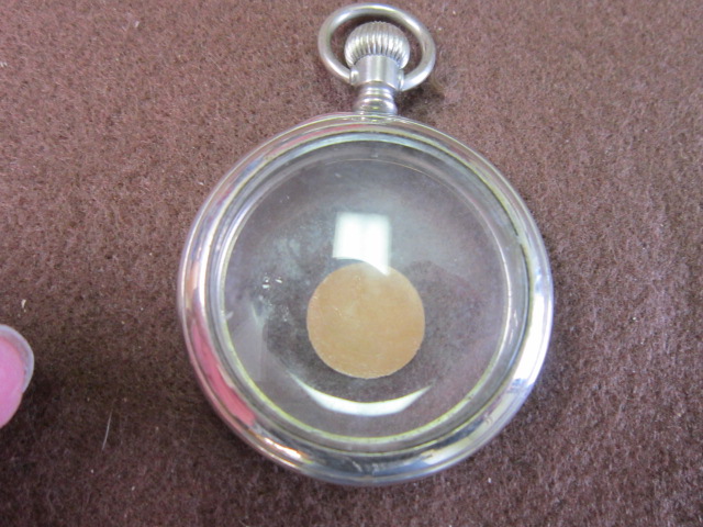 I believe I have a nice 10 sz sample case. It has a fresh mineral glass crystal on one side.no manufactures mark and Bezels snap good.