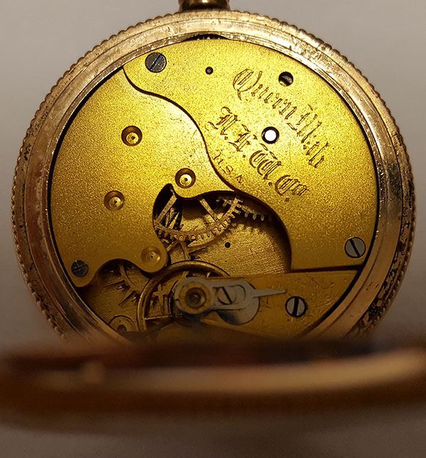 I hope you can all bear with me for a while. I'll probably be posting a bit more than I really ever have. I've recently acquired several watches and a really nice case and for the sake of marital bliss, I'm probably going to try and auction some of them off. Along those lines, I'm trying to figure out some of what I have. This first one is a cute little thing. I believe it's a Queen Mab from the New England Watch company. And that's about all I have found. I'll post a few pictures and hopefully see if you can shed a little light on things. This first picture shows size and face.
