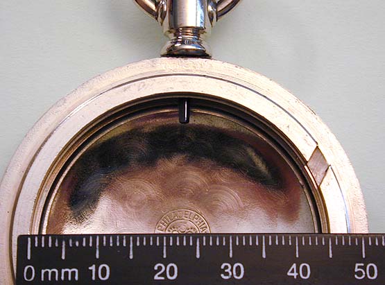 John, your case definitely has that "unused but slightly shopworn" look to it. As I said above except for the "Imitation Silver U.S.A." it looks like any other Phiadelphia 18-size open-face case. But again, the exact lever position may vary with different watch movements.