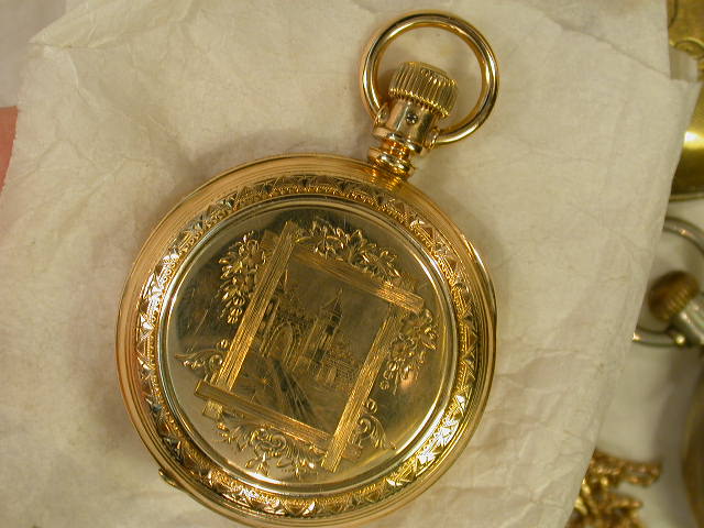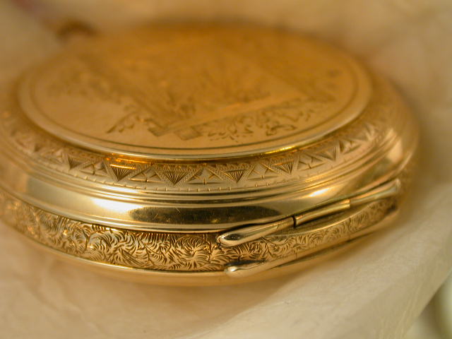 I included the first photo in the European section a few days ago but no hits there yet either. Tom had thought it may be French so thats why I posted it there. My thoughts are it could possibly be a Germany made case since his ancestory goes back that way. How about it~ France & Germany, any thoughts?? Of course I am looking for any documentation which would help immensely. And from the "GOLD" folks out there, from the added photos can you point me in a better direction as right now I am 50% gold & 50% gold filled as to metal contents. Your help would certainly be appreciated also, and it doesn't have to be solid gold to make me any happier as the Sgt. said" Just the facts maam, just the facts"