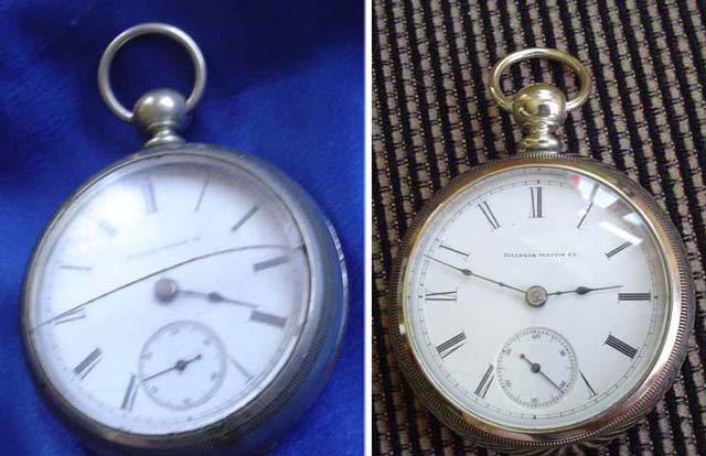 The case on the Waltham (as can be seen in the last set of photos) was absolutely black from tarnish. They were much worse in hand than these photos show.