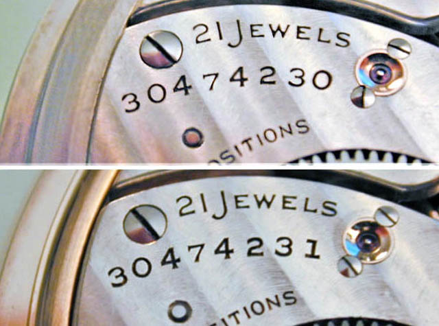 Barry RosellWhile not sequential, I also have a set of two Hamilton 960 (751387 and 389) and another set of Hamilton 922 (3011637 and 639) that are OFF BY ONE... :-( If anyone knows where the inbetween numbers are, I'd be happy to buy it and make THREE IN A ROW ! :-)