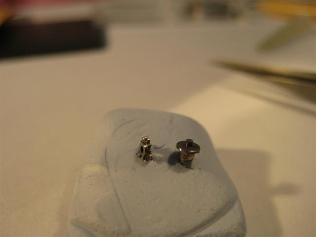 Derek RamsdaleThanks Dave, The pictures show how a small threaded piece of the lower arbor part, with the gear for operating the WI, has snapped off @ some stage. This bottom piece screws into the top piece to form the complete barrel arbor. I`m guessing the gear was pressed onto the lower arbor during manufacture.