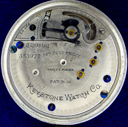 Most of the Keystone watches I've seen have gilt plates, sometimes decorated but more often plain. I'm curious to know how common or uncommon Keystone movements are with damaskeened nickel plates.