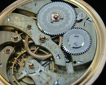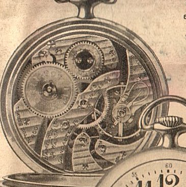 Next we must recognize the pattern on the wheels in that drawing Tom shared is not even the 950 style of damaskeening. That causes me to question the accuracy of the drawing that shows no cover and whether Hamilton ever actually produced movements without the barrel cover in place, my feeling is they most likely did not. Looking more closely at the "1919 Red Book" ad which is taken from page 31 of the Ehrhardt Hamilton book and the drawing on the lower left example in that ad which shows a jeweled barrel with cover in place is somewhat closer to what we would expect to find in other Hamilton advertising as well as on actual watches.