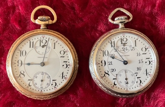Hi, Most of my Waltham Vanguard winding indicator collection are mid-to-late 1920’s vintage and are in the original/correct Waltham-marked cases. These two are earlier, pre-Lossier, both ca1913. I’m wondering when these J.Boss case styles were introduced, and if they could be original to the watches or not? I’ve not been able to find any advertisements to indicate when these came on the stage… I have an identical case to the YGF one on the left which has an original 1918 movement. So probably close considering high-priced movements often sat around for a while before being cased at jewelers... Thanks! Barry PS: I can’t find anyway to add a 2nd photo, showing the inside back covers, but the YGF case is simply “J.Boss”, while the WGF case also adds “25 years”. I have an almost identical case to the YGF, which adds underneath the J.Boss stamp “10k Goldfilled”. ![]() | ||