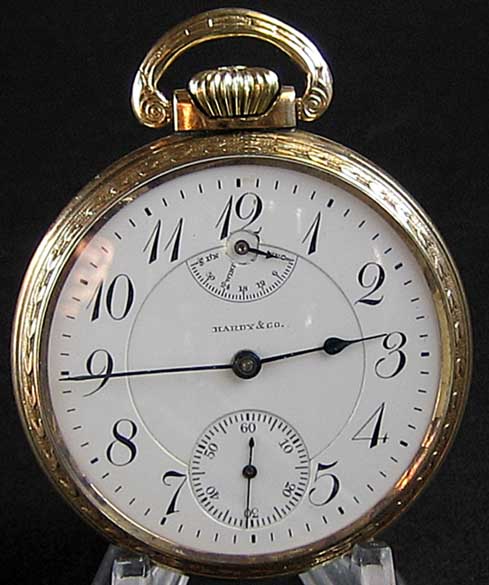 Sometimes I take a leap of faith and buy something I'm not sure about. In this case is was a Wind Indicator 23j Waltham shown in some very blurry picures for sale. I just got it and it's quite interesting. It is private label with the dial marked Hardy & Co. and the movement marked "Made by Waltham Watch Co. for Hardy & Co. SEATTLE. I think that is quite a cool way to mark up a private label movement. Anyway, I don't think the case is original to it but I can't get a manuf. date from the serial number database. Can anyone give me a clue? Not sure if I'm going to keep this one since I'm usually buying Elgins, but it's pretty nifty.