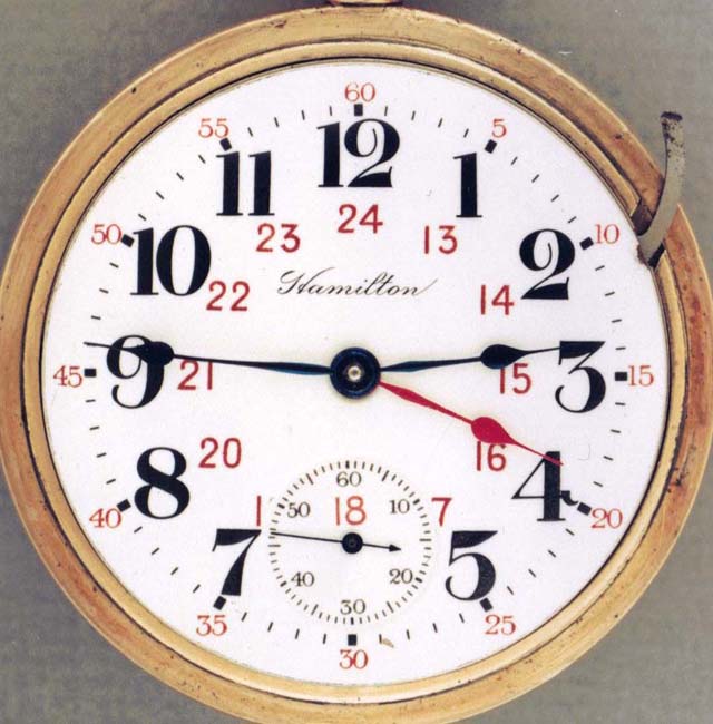 Larry BuchanThe interesting fact I found in my research is that all the communities on the railways where time changed were divisional points where train crews were changed off. The railways did this to avoid any confusion with overlap, take Field, British Columbia for example, while the Time Zone change took place there, geographically the time actually changed about 30 miles west of Field near the community of Golden, British Columbia. I talked to a retired engineer who worked out of Revelstoke, British Columbia the divisional point 120 miles west of Field, he said that the only railway employees that were required to have their watches equipped with dual time zone hands were the crews that worked in the Field yard, this would be the stationmaster, and crews working yard engines in the terminal. Working there in the days of timetable and train order authority, it would be important for the crews and supervisors to have dual time zone equipped pocket watches to keep track of and be in the clear of arriving and departing superior trains. I remember the Seth Thomas Station Comparison Clock at Field, was also equipped with red and blue dual time zone hands, this was for the inward and outward crews from Revelstoke who would be using Pacific Standard Time, and the crews from Calgary, Alberta who would be governed by Mountain Standard Time, I have attached a photo of a late model Waltham 23 Jewel from the 1950s equipped with dual time zone hands, these ones look like the red hand was painted with nail polish. I am going to do some more research on the United States Railroads to see where they changed time.