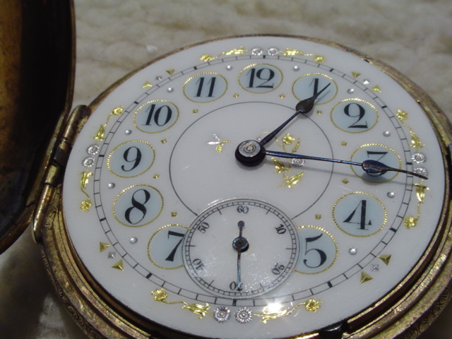 The gold seems to be thin. The case is very well made. It turning out to be a challange getting a decent picutres of the dial, if you thinkit looks good in the picture in hand is 100% better, there are tiny gold dots all around the numbers that catch the light, the whole thing nearly shimmers as you turn it, and is hairline free also!, the case, movement seem to go together, so maybe all original, (movement is a Elgin 17J Adj S18)