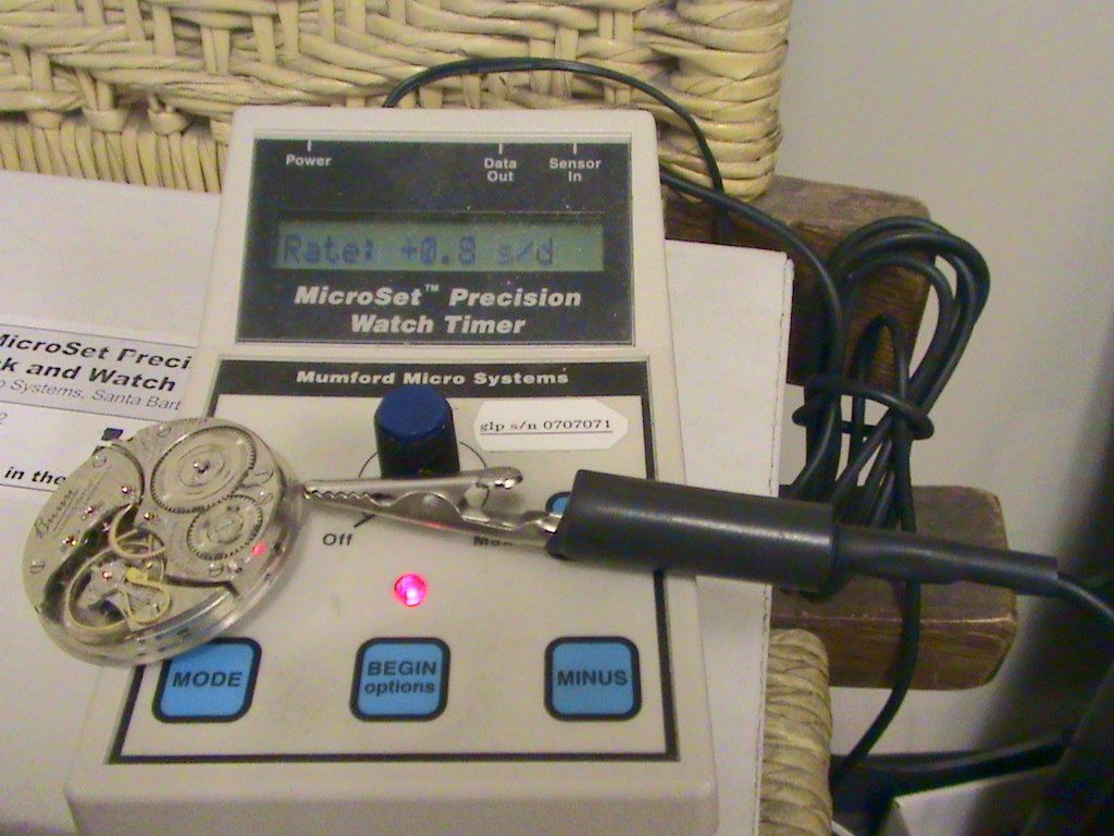 "plus 0.8 seconds per day". (I have to admit I backed out the mean time screws 1/2 turn before it came into these numbers.)