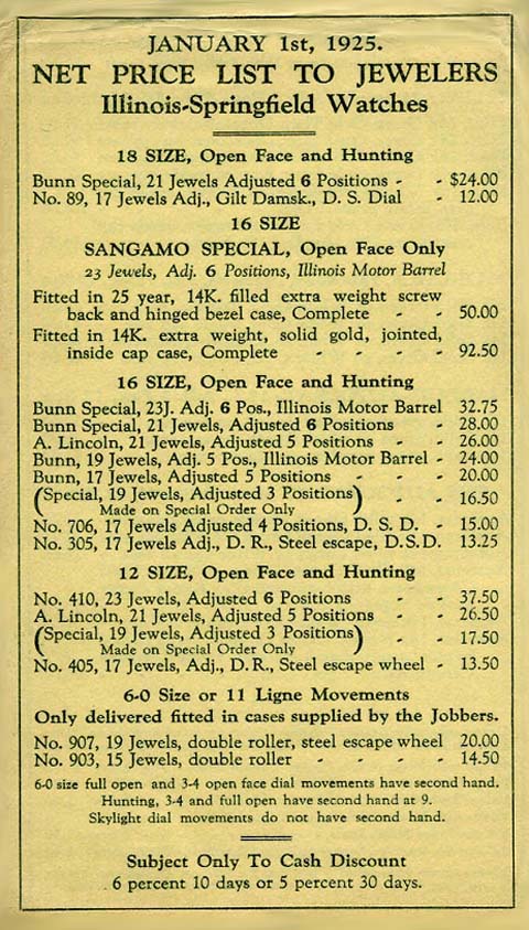 David AbbeLindell, Thank you for the extra information. It is interesting that the 12 size 23 Jewel 410 is the most expensive of the bunch. Says something for 1925 watch buying trends.