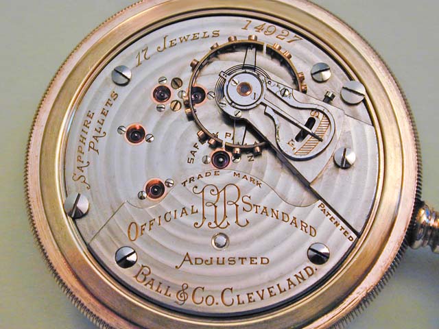 I know nothing about these Ball watches but I was wondering if the plate with two straight edges was so it could be used on either a open face or hunter movement. I have no idea if they made 18s hunter Hamilton/Ball, just a thought.
