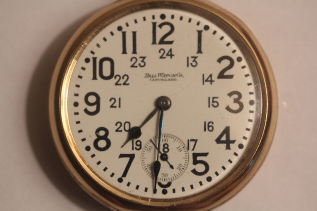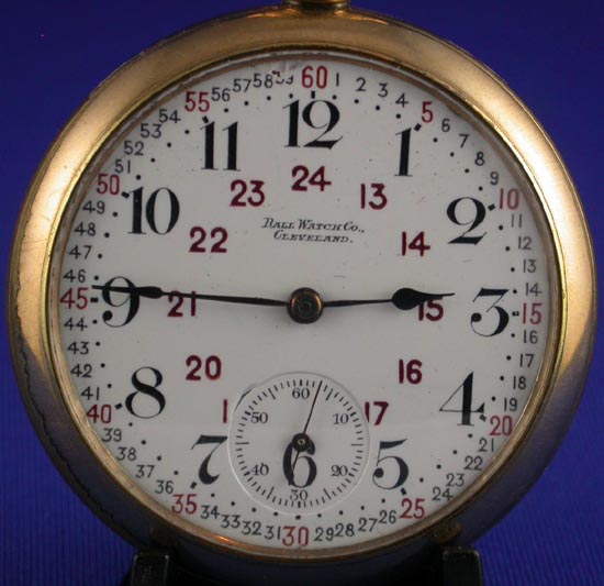 Larry BuchanThe watch dial in your photos is definitely the Canadian Ball Watch Co. type of dial with the block lettering, here is one that is Montgomery with the red 24 hour inner tract.