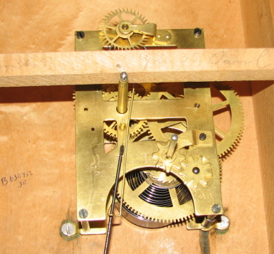 Tom BrownIt has an 8-day Seth Thomas 41A movement. According to the date stamp on the back of the case the clock was made January of 1910