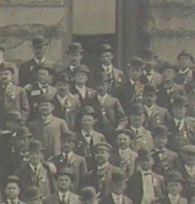 On C.F. Cannon, I don't know which one he is in the photo, the only C.F. Cannon I have been able to find in Painesville Ohio was a Charles F. Cannon, in 1910 he was about 18 & is listed as a clerk for the railroad. So he would have been about 15 in 1905, in the photo does he look that young?