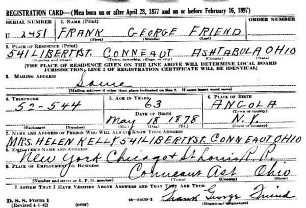 Below is his WWII draft card that shows him working for the New York Chicago & St. Louis Railroad.