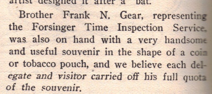 You scooped me on that one, I was going to post it next. Yes I believe the card cases would have probably been used by the Delegates to carry their convention rosters in. Also of interest was this representative handing out souvenirs for Fosingers Time Service