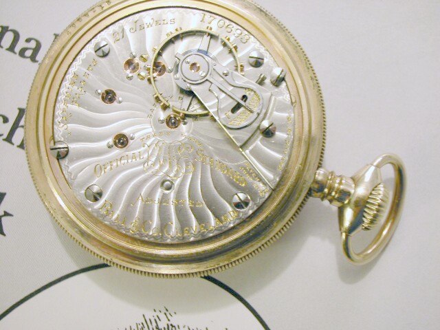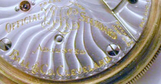 John ArrowoodCrop of the previous image. "Trade Mark, Official BofLE Standard, Adjusted, Ball & Co, Cleveland".