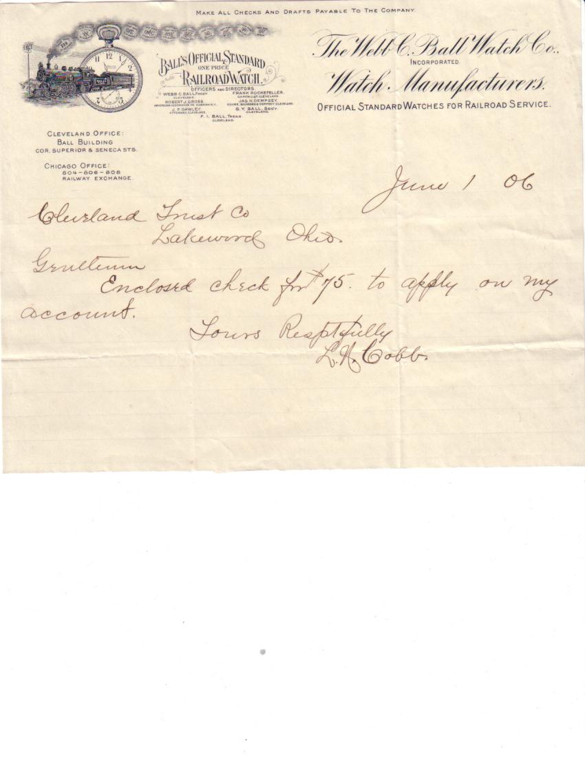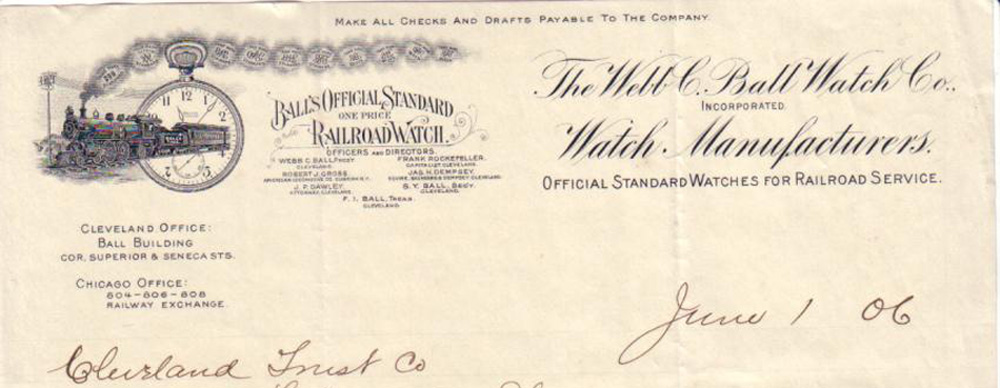 Larry BuchanHear is my contribution to this thread it is a copy of Webb C. Ball's letter head from 1906.