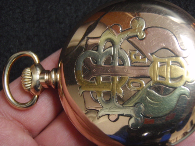 That's a stunning B of RT case, multicolor gold applied decorations are hard to beat. That 21 jewel movement is a prize too.