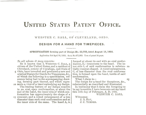 Ball-Hamilton numbers 603 and 608 have the hands somewhat as seen in the 1893 patent. the ball is located a bit further back on the hand.