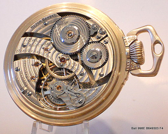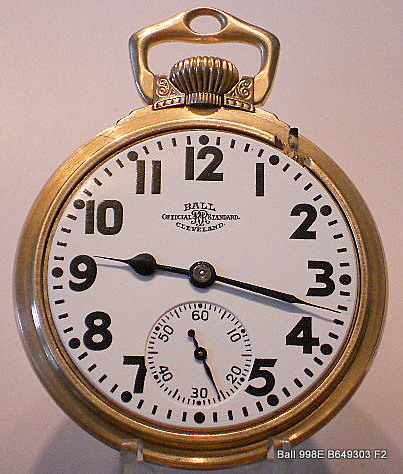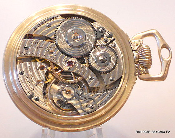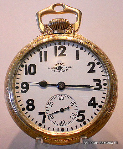 It is circa 1940 in the Ball YGF Stirrup Bow shouldered Pattern Back case. Mvmt# B649303, Case# 9735651. Today there are an estimated 250-270 survivors worldwide. There is no personalizations nor presentations. Worn little and as said, just a nice watch.